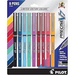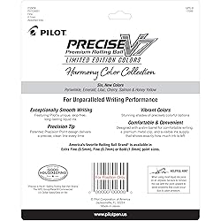 Versatile: Fine tip pens perfect for school supplies, professional projects, long study sessions, taking notes & jotting down grocery lists; write smoothly for a polished, error-free writing, drawing, designing, sketching, or doodling experience Power to the Pen: Express yourself effortlessly with Pilot's line of innovative writing tools, including ink pens for writing, gel ink, rollerball, fountain pens, markers & more. The perfect study partner, journaling tool, & office essential Smooth Writing Liquid Ink: These fine point pens in multicolor glide effortlessly across paper, offering a superior writing experience; limited edition set contains 1 pen in black, blue, cherry, emerald, honey yellow, lilac, periwinkle, salmon & red Patented Precise Point Technology: Pilot's Precise pens, the best pens for smooth writing, feature a precision tip that delivers clean and accurate lines every time, making your writing or creativity come to life with remarkable detail Handy Design: Enjoy the convenience of these fine point ink pens, capped to prevent accidental smudges and stains; transparent barrels allow you to monitor the ink level, ensuring you never run out unexpectedly