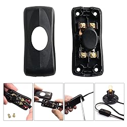 Package includes: 2pcs push button switches. The in-line power cord switch is constructed of durable plastic material that resists aging and heat. Applicable voltage: 0-250V; maximum current: 2A. The end holes of this light switch accept light wires up to 3.8mm diameter. Easy to install: Two-pole connection, easy to install. Slide button on/off. Versatile: Ideal for light industrial, medical, office and many other applications; light line switches can be used in small appliances such as desk/table lamps, mirror lamps, wall lamps, fans or desk lamps, floor lamps, etc.