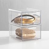 mDesign Stackable Storage Containers Box with 2 Pull-Out Drawers - Stacking Plastic Drawer Bins for Closet Organization, Linen, Coat, Bedroom or Entryway Closets - Lumiere Collection - 2 Pack - Clear