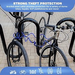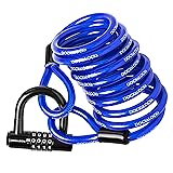 - DocksLocks Weatherproof Coiled Security Cable with U-Lock offers maximum protection against bike thief's. The coiled security cable with looped ends has a steel braided construction and is reinforced with a steel collar. The bicycle lock is made with marine-grade weatherproof steel braided cable and a vinyl coat, both weatherproof materials, highly resistant to corrosion and scratching. Flexible braided steel cable with looped ends is perfect for securing gates, kayaks, motorcycles, scooters, ATVs, tools, sports equipment, or garages. The chain bike lock includes a short shackle u-lock, 12mm, compact, lightweight. Ultra cutting resistant and weatherproof. Keyless, and only needs a 4-digit code to secure your items.