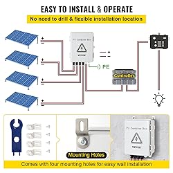 Professional PV Combiner Box: PV combiner box tidied up connection and confluence of photovoltaic modules. It is used to reduce the connection of the photovoltaic array to the inverter and optimize the system structure. Make it easy to cut off the circuit in maintenance and reduce the scope of the power outage when the photovoltaic system fails. It will make the photovoltaic system at its best and increase output power. Secure & Reliable Protection: The solar PV combiner box is equipped with 4 pcs 15A DC fuses, a high-voltage lightning arrester, and a 500V 63A circuit breaker. It has short circuit/lightning surge/over-voltage/over-current protection/grounding protection to avoid damage to photovoltaic panels and inverters when fault occurs. IP65 Waterproof & ABS Shell: The IP65 design of the solar PV combiner shell is waterproof and dustproof, ensuring that frequent replacement is not needed. The sturdy shell is made of high-quality ABS plastic material, insulating, moisture-proof, and has no dripping. In addition, it has impact resistance and high break resistance, keeping your equipment well protected in harsh environments. Easy Installation & Wiring: A plug & play and pre-connected cable offers an easy solution for solar panel connection, saving at least 1-2 hours of wiring by hand. The box PV combiner can be mounted on any regular surface with provided mounting buckles, and no key is needed to open and close the box. Built-in with a ground wire connector, ground wire installation is also available. Compatible with any brand of solar panels with solar connectors. Extensive Application: The combiner box is a perfect device for outdoor installation and use. Suitable for photovoltaic on-grid/off-grid solar power generation systems, solar panel systems, PV array, RV solar power, home solar panel systems. It can support solar panel systems up to 720W in 12V system, 1440W in 24V system, 2880W in 48V system.