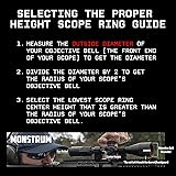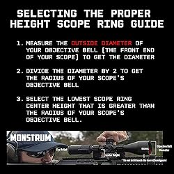 - The Monstrum Next Level Series Scope Rings offer the same ruggedness and reliability as our previous generation Precision scope rings but with an integrated anti-cant level bubble to check for level alignment of your rifle before each shot. Why use an anti-cant level bubble with your scope? Imperfect vertical alignment of your scope when shooting introduces scope cant error - horizontal drift of your shots due to cant. In uncontrolled shooting environments, it is common for the naked eye to misjudge vertical alignment by 2-3 degrees. A slight cant of 3 degrees can result in your shot being off by three inches at 400 yards and is compounded further at longer distances. An anti-cant level bubble corrects for this issue, allowing you to quickly ensure for proper alignment of your rifle. Each set of scope rings is precision crafted to a given height specification. Choose the height that matches your particular rifle setup and preferred cheek weld. Your shot is lined up just where you want it every time. Available in four different heights to match the needs of any shooter: 0.85 inch, 1.00 inch, 1.20 inch, and 1.35 inch. Height is measured from the center of the rifle scope tube to the bottom plane of the scope ring base. Scope base has integrated locking bolts that slot seamlessly into rail slots with zero wiggle for maximum gripping surface. Available in both Picatinny and Weaver versions. 30 mm in diameter, the rings are built for use with standard 30 millimeter scope tubes. Also available in 1 inch and 34 mm versions. Rings are crafted from lightweight 6061 grade aluminum, with heavy duty steel mounting hardware for extreme tolerance. The torx locking screw system allows for quick yet powerful tightening while protecting from the screws from stripping. All Monstrum products include a lifetime guarantee.