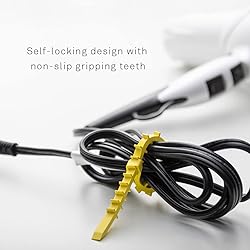 STRAP & DONE! – New Q Knot is our updated new version of cable organizers suitable for bundling multiple objects, organizing various cords, sealing plastic bags for chips, bread, etc… DURABLE, FLEXIBLE, & REUSABLE – Super stretchy and flexible, these reusable cable ties are made with a durable material that allows them to last. Lock, release, and reuse again and again with the same cable ties! SELF-LOCKING – Its smart, self-locking design features non-slip, gripping “teeth” that tightly secures anything while still making it easy to release. Just pull the tail end through the loop to secure and pull the loop end away off the tail to release. COLOR & SIZE – Each resealable pack includes 20 ties in total with each size in a different color: yellow (large, 7.3125”, 4 ties), turquoise (medium, 6.25”, 8 ties), and white (small, 5.0625”, 8 ties). Newly Designed in California