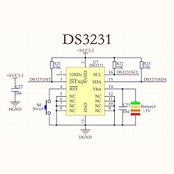 DS3231 16-pin memory chips - AT24C32 ,extremely accurate I2C real-time clock (RTC), with an integrated temperature-compensated crystal oscillator (TCXO) and crystal. Integrated oscillator improve long-term accuracy of the device and reduces the number of components of the production line. Provides two configurable alarm clock and a calendar can be set to a square wave output. Address and data are transferred serially through an I2C bidirectional bus. Highly accurate RTC completely manages all timekeeping functions.The device incorporates a battery input, disconnect the main power supply and maintains accurate timekeeping. A precision temperature-compensated voltage reference and comparator circuit monitors the status of VCC to detect power failures, provide a reset output. In addition, RST pin is monitored as generating a μP reset.