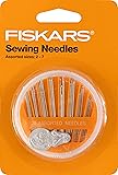 • Fiskars Assorted Sewing Needle Sewing Kit Set contains 30 assorted hand sewing needles, sizes 2-7, and a needle threader all neatly stored in a round compact. Needles include betweeners, darners, embroidery needles and sharps, suitable for a wide array of sewing projects and crafts.
