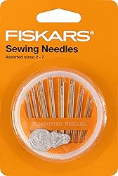 SEWING, ARTS, AND CRAFTS STAPLE: Fiskars Assorted Sewing Needle contains 30 assorted needles and a needle threader, all neatly stored in a round compact 30 ASSORTED NEEDLES: Needles include betweeners, darners, embroidery needles and sharps, size 2-7 SUITS WIDE VARIETY OF PROJECTS: Suitable sewing accessories and supplies for a wide array of sewing projects and crafts SAFE AND CONVENIENT: Round compact container spins to safely remove needles from storage QUALITY TOOLS FOR ARTS AND CRAFTS: From scissors & cutting mats, rotary & paper cutters, to classroom essentials, scissors for kids, and quilting & scrapbooking supplies, Fiskars crafting tools are designed to help you express yourself INCLUDES: (30) Fiskars Assorted Needle Set in compact case with (1) needle threader