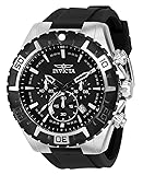 - Black dial enhanced by silver-tone hands. Silver-tone stainless steel case with a black silicone band. Quartz movement. 100 meters / 330 feet water resistance. Uni-directional Rotating bezel. Flame Fusion crystal. Solid caseback. Buckle clasp. Pull / Push crown. Case size 49 mm x 14 mm. Band 26 mm x 8.25 incheslong. Invicta 37630 Aviator Watch.