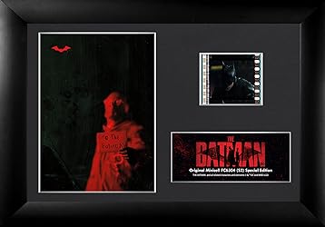 - The Riddler has a special note to be delivered “To the Batman”, written in barely legible penmanship. What could it be? Featuring an unnerving image of Paul Dano as the Riddler , this 7” x 5” collectible item also holds one 35 mm carefully hand cut film clip from “The Batman” – could it reveal a spoiler from the highly anticipated 2022 film? This movie memorabilia makes a perfect addition for the DC Comics fans in your life! Included is a high-quality image framed with an easel back. Clear acrylic backing allows light to flow through and illuminate the authentic clip of 35mm film from the movie! FilmCells Presentations Each officially licensed FilmCells Presentation is carefully made with a high attention to perfection and detail. Presentations are double-matted, placed in a quality frame, and contain a clear front and back that allows natural light to enhance the film frames. Each piece of film is hand-cut from reels to provide you with the best possible scenes. The film strip portrayed in the image above is only an example of the film cells you may receive as each presentation is cut and compiled from film reels by hand. Individual cell cuts will vary from piece to piece. These features add up to a unique and exceptional collectible that looks great in any room.