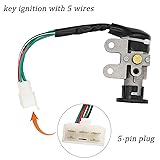 This ignition switch is brand new and high quality aftermarket replacement part,high performance, durable in use. This ignition Switch Key Set is compatible with GY6 49cc 50cc Chinese Scooter Moped TaoTao Peace Roketa Jonway NST Tank. Ignition switch key set, 3-position switch: on/off/lock, 5-pin plug.Package indcluding: key ignition with 5 wires,set of 2 keys,gas tank cap lock,seat lock and mounting clip,seat latch and cable assembly 49cc ignition switch replacement for 49cc scooter key,for 50cc key ignition,for moped key 49cc,key switch for taotao scooter 50cc,key ignition for taotao 50cc,for ignition switch with key scooter gy6,for ignition switch scooter,for gy6 50cc ignition switch key lock,for gy6 50cc key switch,for taotao 50cc scooter key,for taotao scooter ignition switch,switch for a gy6 50cc taotao moped,for scooter ignition switch,for gy6 50cc ignition switch key,etc. Easy to install, but professional installation is recommended. If you have any problems during the use of the product, please feel free to contact us by email, we will try our best to solve the problem for you, and provide the return service within seven days of arrival.