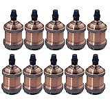 REXTiN 10pcs E26 Vintage Lamp Socket Pendant Bulb Socket E26 E27 Vintage Bulb Holders Ceramic for DIY Lighting Bulbs Industrial Decorative (Red Bronze 10pcs)
