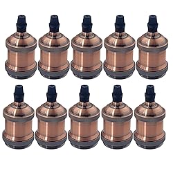 - Rextin 10 pcs E26 Vintage Lamp Socket pendant bulb Socket E26 E27 vintage Bulb Holders Ceramic for DIY Lighting Bulbs Industrial Decorative Description: Model: E26/E27 Vintage Lamp Socket Size: 5Cmx 8.8cm (1.98*3.46IN) Materials :Aluminum Cover ,Ceramic Body inside 4 colors to choose:,antique brass,red bronze,pearl black,silver (depends on your choice) Voltage: 12V-250V Current:0- 4A This E26 Vintage Lamp Socket is High quality ,beautiful design,Aluminum Cover ,Ceramic Body inside ,perfect for DIYpendant lighting projects ,home or Industrial Decorative Aluminum Cover,Ceramic Body, High Temperature Resistant , reliable, UL Listed, long service life base socket adapter bulb holder . All of our rextin vintage Bulb Holders come with 12 month after sell service Package include : 10 x e26 Vintage Lamp Socket red bronze