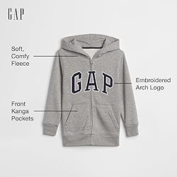 FIT GUIDANCE: This style offers a standard fit. If your child prefers extra room, we recommend sizing up especially during the colder months. Be sure to review the size chart before purchase as fit and style will vary. COMFY FLEECE: Gap zip hoodies with long sleeves and comfy fleece are the ideal wardrobe staple for keeping warm and looking cool KANGA POCKETS AND ZIP FRONT: Kanga pockets hold his must-haves and keep his hands warm, while the full front zipper allows him to easily zip and unzip SIGNATURE GAP LOGO: This Gap Boy’s Logo Hoodie Zip Sweatshirt has an embroidered arch logo applique at the front AMERICAN STYLE FOR ALL AGES: Gap champions a uniquely optimistic sense of American style that bridges the gaps between individuals, generations, and cultures