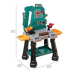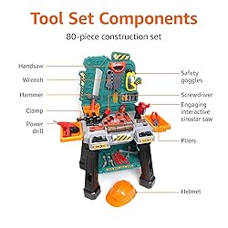 IMAGINATIVE WORKBENCH PLAYSET: Ignite your child's imagination with our Workbench Play Set, offering endless hours of hands-on, interactive playtime. This play set combines fun and education, helping to develop your child's motor skills, safety awareness, and creativity. 80+ PIECES FOR A COMPLETE EXPERIENCE: The set includes over 80 pieces, featuring a robust black and green toy workbench, a variety of play tools, and numerous accessories. From power drills to safety goggles, this set delivers a full work mode experience. INTERACTIVE CIRCULAR SAW & MORE: The playset features an engaging interactive circular saw, power drill, hammer, screwdriver, pliers, wrench, handsaw, and a clamp on the workbench to keep pieces secure. Children can immerse themselves in role-playing scenarios that mimic real-life experiences. INCLUDES PLAY SAFETY EQUIPMENT: For a complete workbench experience, the play set also includes a play helmet and safety goggles. These accessories not only add to the fun but also introduce kids to the importance of safety when working with tools. AGE-APPROPRIATE AND EASY TO ASSEMBLE: Suitable for kids aged 3 and above, this play set is designed for safe and easy assembly. With only eight main pieces to screw together and simple-to-follow instructions STURDY AND SPACIOUS: The workbench measures 27.63'' x 15.88'' x 34.50'' (LxWxH), providing ample space for your child to explore and play. Its sturdy construction ensures it can withstand the rigors of enthusiastic play and makes a great holiday or birthday gift. EASY TO ASSEMBLE AND STORE - This kids tool set is easy to put together and to take apart when not in use