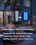 - Please measure and confirm the bulb size of the original bug zapper before ordering.Product Features:1. Quantity: 2 Pack2. Dimensions: 7.48" * 1.78" * 0.93"3. Base: 4 Pins4. Application: Suitable for BK-15C, BK-15D(BF-35), BZ-15(BB-15WHT), FP15, TZ15, UV15, JY-02, NLZQ-02, etc. Note:1. If you want to replace it, please unplug the device and allow it to sit for 2 hours to allow all the electricity in the unit to disperse.2. The light tube is fragile, if it's broken or doesn't work caused by shipping, please contact us to get a replacement.3. All the models we mentioned just show products adaptability.