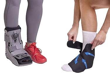 - The Brace Align Ultra Light Air Short Full Shell Walking Boot is 33% lighter than traditional walking boots. The lightweight shell reduces fatigue and stress on the injury while the built in air pump allows you to customize your compression and fit. The rocker bottom sole promotes a natural gait and the Slip resistant treads allow for increased traction and safety as you walk. The shock absorbing heel cushions your steps all day long allowing you to walk in comfort. Our air cast boot is perfect for a broken toe, ankle and foot injuries, stress fractures, post-op care, sprains, strains, diabetes, neuropathy, Achilles tendon injury and more! The Brace Direct Ankle & Foot Reusable Ice Pack Cold Wrap provides instant pain relief for foot injury, swelling, arthritis, plantar fasciitis, Achilles Tendinitis, sprains, strains and more. Simply place the cold packs- or the entire wrap- into the freezer for 30-45 minutes for soothing, ice cold therapy. The velcro tabs can easily be adjusted to provide your desired compression for additional pain and swelling relief. Ice packs stay flexible even after freezing, which allows them to contour to your foot and injury area to provide maximum effective coverage! Indications: Acute Ankle Sprains Soft Tissue Injuries Foot and Ankle Fractures Post-Operative Procedures Metatarsal Fracture Diabetes Neuropathy Achilles Tendon Injury