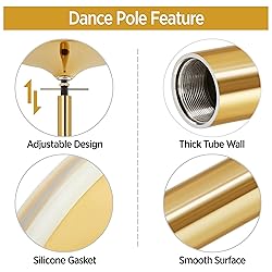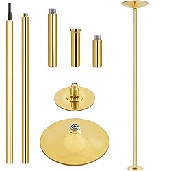 - Quick overview: For indoor exercise, pole dancing is a fairly efficient and convenient choice. It can quickly burn down calories, increase metabolism, tone muscles, improve balance and body flexibility, and build up core strength. Best of all, it only requires a small-footprint dance pole. For beginners, this Height Adjustable Chrome-plated dance pole with 2 modes is a cost-efficient choice. Crafted from chrome-plated steel, this heavy-duty dancing pole boasts good water and oxidation resistance and a high weight capacity of up to 441lbs/200kgs. The 2 provided extensions allow a flexible pole length adjustment ranging from 7.7’/235cm to 9’/275cm to accommodate different ceiling heights. The spinning and static modes can be easily swift by turning the bottom screw. Simple assembly is required. Specifications: Color: gold G.W.: 31.4lb Pole diameter: 45mm Weight capacity:441lb Top dome diameter: 15.5” Base dome diameter: 9” Material: Chrome-plated steel Overall dimensions: 15.5" L x15.5" W x 92.5"-108.5"H/ 1.3' L x 1.3' W x 7.7'-9' H NOTE:1. Please allow ±1cm/0.5” errors due to manual measurements. Package included: 1 x Dance pole 1 x Assembly kit 1 x Assembly instructions