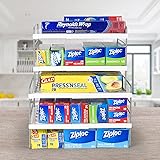 2 Pack Expandable Kitchen Wrap Organizer Rack, Height & Width Adjustable Aluminum Foil and Plastic Wrap Organizer for Pantry, Cabinet Food Wrap Organization and Storage - (3 Tier 9.8 to 15.6"L)