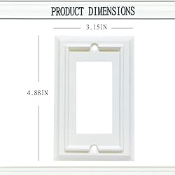 SUPER VALUE PACK OF 4:The 4 pack of decorator wall plate includes 8 (6-32 X 3/8") oval head slotted machine screws.Size:3.15x0.43x4.88 Inch,Single piece weight: 0.10Lb. Each box contains a screwdriver. The easy-to-install wall plate covers can be installed within minutes. WHITE SWITCH PLATE MATCHES ANY COLOR WALL: The bamboo fiber itself is smooth and the wall plate made of it has a natural gloss finish. And white plate matches perfectly with any color wall. Such a wall plate will greatly upgrade the decoration of your room. SIMPLE DESIGN EASY TO CLEAN: Simplified designed lines are beautiful. The gloss finish & dust resistant make it easy to clean. ABOUT OUR WALL PLATES: Bamboo fiber material wall plate is made by steel mold under high temperature. The wall plate made of natural fiber has insulating properties themselves.When you get it in your hand, you will obviously feel that it is not the same quality as the cheap plastic wall plate. It is new and green to your home. 100% SATISFACTION AFTER-SALE SERVICE:we are very concerned about the user experience of buyers. If you are not satisfied with your purchase for any reason, please feel free to contact us and we will reply to you within 24 hours