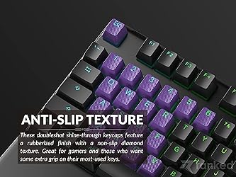 - RUBBERIZED DOUBLE SHOT KEYCAPSThese doubleshot shine-through keycaps feature a rubberized finish with a non-slip diamond texture. Great for gamers and those who want some extra grip on their most-used keys.Specifications:Material: TPR + ABSKey Profile: OEMCompatible with: Cherry MX, Gateron, Kailh, Kailh BOX, Outemu, LK switches.23 keys: ESC 1 , 2 , 3 , 4 , 5 , 6Q , W , E , RA , S , D , F Z , X , C , VArrow keys ( x4) Box Content: 23 Rubberized keycapsKeycap puller