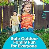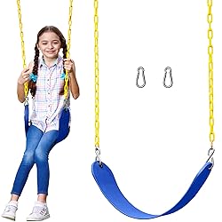 KIDS will love this combo addition to their swing set accessory parts. Imagine how your children will enjoy their outdoor playground playset and exercise in the backyard for fun. Yes, their outside playscape will be improved GREAT REPLACEMENT: This replacement swing for swing set brings the heavy duty quality of the school playground into your own backyard. Create a DIY swing on your porch, in a tree or upgrade the swing set parts of any traditional A frame. FULLY ASSEMBLED swingset trapeze bar with rings and heavier 2/0 48" chains 20" plastic coated and includes Trapeze Bar - green powder-coated with chains and 2 steel carabiners STRONG CONSTRUCTION: Made with the durable materials you will recognize from the local playground or park. These swings for kids will survive getting beat up by kids, the weather, and any adult experiencing FOMO We highly recommend the use of swing hangers that are designed to allow for relatively friction free back and forth motion that swings require. Using a stationary fixture, such as eye loops, will cause metal on metal friction and is a safety concern and are not recommended