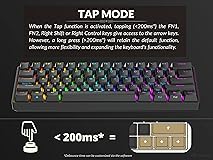 ⏩ HOT SWAP SWITCHES: Change, lube or upgrade your switches in an instant using the included tools without soldering. ⏩ RGB: The multicolor RGB lighting system features 16.8 million colors that can be customised into eighteen sets of mesmerizing backlight patterns using the software. ⏩ TAP MODE: Don't lose your arrow keys! No need to hold a function key, simply tap to move! via " Shift , FN, Menu and Ctrl". ⏩ DEEP ACOUSTICS: With an additional layer of anti-vibration and noise-reducing foam, designed with sound dampening and deeper acoustics in mind. ⏩ LUBRICATED STABILIZERS: Pre-lubed stabilizers ensuring minimal wire rattle and solid gaming experience ⏩ SOFTWARE: set up complex macros or rebind keys as you wish and customize lighting effects ⏩ DOUBLESHOT PBT KEYCAPS: Long-lasting, sweat resistant, ultra-sharp legend keycaps in Cherry Profile, perfect for typing and gaming, the best of both worlds. ⏩ ARM Processor: 32-bit ARM processor ⏩ Compatibility with Mac and Windows; Compatible with Windows 10, Win 8, Win 7, Win Vista, Windows XP and Mac OS (Might need to remap some key through the software) ; The keyboard is adapted for all environment, Home & Office use. ⏩ KEYPULLER: Keycap puller & Switch Removal tool included to change your key caps or switches on the go or at a esport tournament. Type-C to type-A USB cable 5FT/ (1.5M)