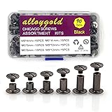 90 Sets Black Chicago Screw Leather Assorted Kit ,6 Sizes of Screw Rivets for Leather Rivet ,for DIY Leather Craft and Bookbinding (M5 X 4, 5, 6, 8, 10, 12)