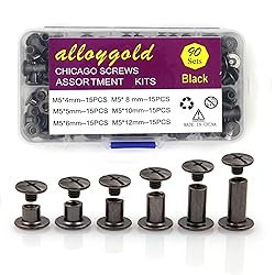 ★90 sets of 6 sizes: Chicago rivet stud set includes 6 sizes (M5*4mm, M5*5mm, M5*6mm, M5*8mm, M5*10mm, M5*12mm), 15 sets of each size. And with 3 different lengths of screw(M4*3mm,M4*4mm,M4*5mm) . You can combine them freely. It is suggested that the column sizes of M5*10 and M5*12 should be matched with M4*5 screws, so as to be more secure. Various lengths are available to meet your different needs. ★High demand: leather rivets strong and durable, easy to bind, excellent finish, good screw head chamfering, low profile slot, professional appearance, easy to disassemble and install, is your only choice. ★High-quality material: These Chicago screws are made of high-quality carbon steel, advanced nickel plating, and a stable and dense oxide film on the surface, don't come loose which is durable and anti-rust. ★Widely used:These leathercraft rivets are especially suitable for all kinds of leather crafts, such as belts, handbags, leather shoes, binding documents, books, photo albums, DIY crafts and so on. You can mix it up and use your imagination. ★Reusable storage boxes: All the leather screws packed in a delicate and transparent box. The book screws are arranged according to size, you can easily store and find the size you need.