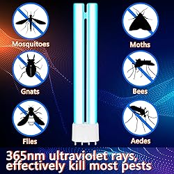 - Features: Mosquito bug zapper light bulbs are functional in your life, it's thoughtful of you to send them to your friends, neighbors, relatives, family members, colleagues, and others who suffer from mosquitoes. Light bulb for mosquito can play a big role in mosquito control with less impact, which will not send an unpleasant smell like mosquito incense, bringing you more trouble. Specifications: Material: glass tube and RE phosphor Color: white Quantity: 4 pieces Package includes: 4 x Bug zapper replacement bulbs Notes: Manual measurement, please allow slight errors on size. The color may exist a slight difference due to different screen displays.