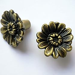 - Perphin vintage brass floral cabinet knobs makes life better ❀The vintage bronzed cabinet knobs shaped like daisy flower. It is great for any color (ivory or flat) of cupboards furniture, bringing you back to Middle Ages. ❀Perphin bronzed antique brass flower cabinet knobs make splendid visual effects in the room if several of them are used, so as to decorate the room and make it elegant. ❀Perphin round vintage floral mini cabinet knobs are excellent decorative door knobs for decorating or refurbished your furniture like dresser, cupboard, wardrobe, drawer, kitchen cabinet, etc. Features: Material: Zinc Alloy Vintage Floral Cabinet Knobs Diameter:44mm(1.73inch) Metal Cabinet Knobs Height: 23mm (0.91inch) Screws of 3 Different Lengths:22 mm(0.87 inch), 25 mm(0.98 inch), 30 mm(1.18 inch) Package Included: Vintage Floral Cabinet knobs×6 Screws for antique floral metal cabinet knobs: 0.87 inch Door Knobs Screws×6 0.98 inch Door Knobs Screws×6 1.18 inch Door Knobs Screws×6 The vintage round bronzed drawer knobs are well made from zinc. Its quality is superior and perfect for almost any decorating idea.