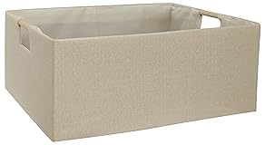 - Measures: 16.5 Inch x 12.2 Inch x6.7 Inch. foldable storage bin are made of top-grade lightweight eco-friendly linen fabric, with a 2 mm pressboard base insert to maintain shape and strength. Large enough to organize lots of household and personal goods Durable Carrying Handles: strong wooden handles make the linen fabric storage basket easy for you to carry heavy loads, while the superior fabric quality ensures that the box has the strength to bear. These foldable boxes are both functional and decorative, strong and elegant. Multi- purpose of the shelf basket: Ideal storage containers for organizing magazines & books, kids toys, office supplies, baby products, diapers, clothes, socks, towels, toiletry storage, Making your home more tidy and orderly. Collapsible closet storage bins:You could simply fold it up when you don't use it or when you need it for travel use.There are stiff cardboards inserted in the bottom and all side walls for support allowing these storage bins to stand on their own even when empty. Quality commitment: If for any reason you are not satisfied with your purchase, please contact us. We provide 100% Satisfaction for risk-free shopping