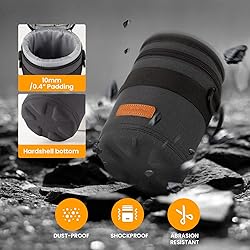 【SHOCKPROOF&ROBUST】 The reinforced bottom with EVA hard shell and the 10mm thick all-round padding offers effective protection against falls from heights of up to 2 meters /6.5 feet. The lens case is made of robust and water-repellent canvas nylon, protects against moisture, dust and scratches. 【EXTRA POCKET】 A separate zippered compartment on the cap provides additional storage space for lens caps, SD cards and cleaning cloths. This allows quick access to your camera accessories without having to open the lens storage bag. 【DIMENSIONS】 Bag External Size: Length: 18.5 cm / 7.2 inch; Diameter: 12 cm / 4.7 inch; The camera bag can hold lenses with a maximum length of 13.5 cm / 5.3 inch and diameter of 9.5 cm / 3.7 inch. 【VERSATILE】 A detachable shoulder strap is included for sizes from L to XXXL. Our TARION hard lens bag can also be attached to the belt, other bags or tripods thanks to the double hook & loop strap. 【COMPATIBILITY】 Our HLB hard lens pouch series includes 6 size categories. Please choose a suitable size for your lens. Compatible with Canon, Nikon, Pentax, Sony, Olympus, Panasonic, Fuji, Leica, Sigma and etc lenses.
