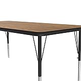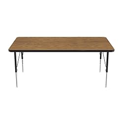 Correll 30"x72" Rectangular Econoline Classroom Activity Table, Medium Oak Melamine Top, Height Adjustable (19"-29"), Black/Chrome Legs, School Furniture, Made in The USA