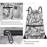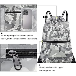 CALACH draw string back bag, Large Gym Sports string backpack for men and women with front zipper pocket and inside zipper pocket to keep key or phone (Grey camo)