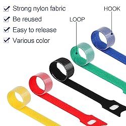 Super Valuable: 120PCS cable straps is enough for your home and office use Durable: Cable ties reusable made from high quality microfiber cloth Easy to Use: These electrical cable ties features hook and loop design which is easy to adjust. The cable wrap opens and closes easily and quickly Multifunctional cord organizer storage: Great for computer cords, audio cables, TV cords, electronics cords, PC cords, Charger cords, headset wires, phone charge cord, laptop charge cord, lamp cords, etc Customer Service: If you are not satisfied with the product, please contact us