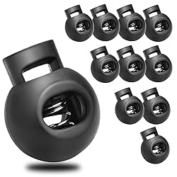 - CooBigo 50 Pack Plastic Cord Locks for Drawstring Paracord Spring Toggle Stoppers - Keep Your Cords And Strings Secured & Free Your Life Small Cord Lock, Compact, and Lightweight Toggles that offer a wide variety of uses, make your life a bit simpler and more convenience Why Choose CooBigo Cord Lock Spring Stopper? The Cord Lock made of heavy-duty high quality environmental POM Plastic material, it is not easy to break, very sturdy and durable, you can use them for a longer time. Our Cord Lock With strong spring-loaded design, provide you with a firm grip, help to stop the cord or drawstrings from slipping, keep your rope lock tight and secure. Our plastic cord locks are fit a variety of different drawstrings and types of cords less than 4.5 mm,such as Paracord Parachute Bungee shock cord,elastic cord,finer cords,pull cords,draw cords,and more. Easy to use, simply squeeze together and the cord stops for drawstrings can move freely up and down.When released,tension is engaged and the cord lock stays in place. Cord Stoppers are for multipurpose uses, can be used on No Tie Shoelaces, Sweat Pants, Hoodies, Sportswear, Jackets, Boots, Gloves, Canvas Bag, Backpack, Pet Backpack, Tents, Camping, Bracelet, Tire Covers, paracord and a variety of outdoor and gym products DIY Replacement parts project etc. Package Includes: 50 Pcs Single Hole Roun Ball Small Cord Locks Cord Stopper Cord Lock Specifications: Material: POM Plastic Color: Black Single Hole Dia: 6 x 4.5 mm Cord Lock Outter Size: 21 x 18 x 14.5 mm Tips: Small parts, not suitable for children under 3 years old. Please allow slight dimension difference due to hand measurement. Satisfaction Guaranteed Service: If you receive defective or missing plasitc spring cord locks, or if you are not 100% satisfied with the product, please feel free to CONTACT US