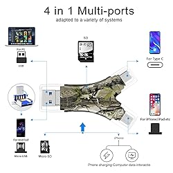 4 in-1 SD Card Reader:The memory card reader has various interfaces,usb / usb c(type c)/micro usb/sd card slot/micro sd card slot and iOS devices charging port for iPhone/iPad,which allows you to easily transfer the required files between different devices. With Charging Port : the sd card reader adds a charging port to its design. When you use an SD card adapter to charge your iphone/ipad devices, You can enjoy charging while transferring file data. No longer worry about power shortage. Real-Time Sharing and Data Management:High-speed two-way transmission allows you to save a lot of waiting time. micro sd card reader provides intelligent file viewing and management functions, allowing you to easily manage data between iPhone /ipad/ Android / computer and other devices. Compatibility:The sd/micro sd card reader support all iPhone with iOS 8.0 and up and iPads with iOS 8.0 or later/OTG Android phone/computer and other devices with usb port,Maximum support memory card capacity 512GB. (the package does not include sd card and micro sd card) Small and Portable:The slim and sleek design + keychain design allows the sd card reader to be placed into your pocket. When you are traveling outdoors or exploring, the keychain can prevent the memory card reader from being lost. And carry it with you.