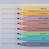 Quick Dry and No Bleed: The Bible Safe Highlighters glide easily on thin Bible pages or any paper. 8 Aesthetic Pastel Colors: Cute highlighters that are perfect for color coding and to highlight favorite book passages or notes. Won't Fade or Smear Over Other Inks: The rectangular shape highlighters are easy to hold and don't roll around while being used. Multipurpose Use: Bible Study Supplies, Office or School Supplies, Planner Supplies these soft chisel markers have a wide application. Guaranteed Purchase: We stand behind our products. If for any reason you are not completely satisfied with your purchase, please contact us.