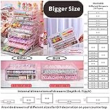 【Cute Stacking acrylic organizers】- Size:6.7*11*4.7inches.The stackable storage bins has 1 independent drawer organizers, totaling 5 drawers 【Multifunctional clear storage bins】 - Design of drawers of different sizes makes it a perfect stackable storage drawers for storing lotion,skin care,essence, facial cleanser, lipsticks, makeup palettes, eye shadows, concealers, and other skin care products, cosmetics,toiletries makeup,lipstick,toolbox,office supply,craft,stationery,and hair clip accessory organizer bins 【Stackable Drawers Design-medicine】 cabinet organizer can stack each other,You can use each drawer separately or match it with Our other drawers from our brand,the medicine organizer compact and simple design, does not deform, and is shiny. It is very suitable to be placed on the dormitory,bedroom,Vanity Countertop,dressing table,office desktop,Bathroom Counter organizers and storage 【This clear drawer organizers is Perfect Gift】 - Perfect choice as a desk organizer with drawers gift to women,Girl,girlfriend, daughter, wife, mom, and friends. College dorm room essentials for girls.Ideal gift for valentine's day, mother’s day, thanksgiving day, christmas, birthday and wedding. 【Stylish and Durable cabinet organizers and storage】: Crafted from premium materials, our acrylic drawer organizer combines durability with a sleek, modern look that complements any décor, whether modern minimalist, Nordic, or vintage. This organizer is also a must-have for beauty bloggers, makeup artists, and college students.Very suitable as: desk storage, under sink storage, makeup storage, under bathroom sink organizer