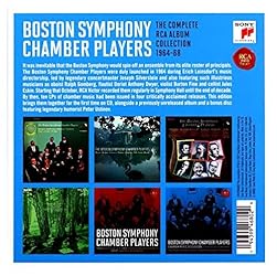 - It was inevitable that the Boston Symphony - hailed as "The Aristocrat of Orchestras" in the early '60s by RCA Victor, it's long-time record company - would spin off an ensemble from it's elite roster of principals. The Boston Symphony Chamber Players were duly launched in 1964 during the Austrian conductor Erich Leinsdorf's music directorship. Starting that October, RCA Victor recorded them regularly in Symphony Hall until the orchestra changed labels at the end of decade. By then, ten LPs of chamber music had been issued in four critically acclaimed releases. Sony Classical is now pleased to present all these recordings for the first time on album. The BSO's ensemble of first-chair players is led here by it's patrician concertmaster Joseph Silverstein, one of the finest American violinists of his generation as well as a highly regarded conductor and teacher. It also features such illustrious BSO principals as oboist Ralph Gomberg, flautist Doriot Anthony Dwyer, violist Burton Fine and cellist Jules Eskin, as well as two distinguished guest artists: Claude Frank and Richard Goode sharing honors in the works with piano. RCA Victor recorded these outstanding musicians in a wide spectrum of repertoire, and each LP release represented a judicious balance of classical and modern works, both European and American.