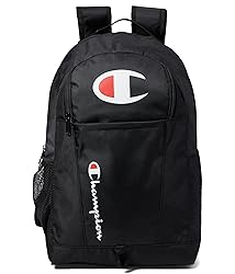 FUNCTIONAL, TOO - Backpack fully equipped with top load accessibility for easy access. KEEPS TECH CLOSE - Padded laptop slip protects tech making this the perfect backpack for work. STAY HYDRATED - Single mesh water bottle holder so you can stay hydrated on the go. ADDED STORAGE - Bag with front and slide slip pockets for maximum storage. C IT? - Champion script spans proudly while large iconic C hovers above. Branded interior lining throughout.