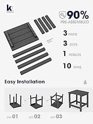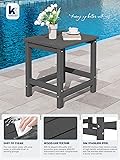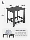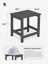 【PERFECT COMPANION】KINGYES Adirondack side tables made with High Density Polystyrene, will never fade, splinter, crack, chip, peel, or rot when exposed to the elements. It is the perfect addition to outdoor Adirondack chair, dining and rocking chairs. 【ALL WEATHER & COLOR STAY】This KINGYES Double deck side table is made with high-density polyethylene (HDPE): a kind recycled material with its timeless style, which can withstand a range of severe weather conditions like burning sun, strong wind or heavy rain yet retain the original color for years to come. 【PRODUCT DIMENSION】17.7" x 17.7" x 14.4", KINGYES Side Table is free of burrs to prevent stabbing of the skin. And the exquisite connection between panels is firmly fixed by the 304 steel screws to ensure that it won’t easily wobble or fall apart. 【90% PRE-ASSEMBLED】This adirondack end table will come with 3 parts, clear instructions and necessary hardware provided. Only need 2 steps according to the manual included or the video we uploaded, and you will get a fashion composite Adirondack side desk (Installation tools included). 【MAINTENANCE-FREE】Requires no painting, staining, waterproofing, or similar maintenance. You can clean easily with soap, water, a soft-bristle brush or sanding sponge included. 【THREE-YEARS PROMISE】We provide a 3 years promise.If there are any question about order and product, please feel free to contact us. 【BUILD TO LAST】Our Adirondack Side Table is durable and sturdy. It won't splinter, crack, chip, peel or rot. The quality 304 stainless hardware also renders them much sturdier and securer. 【STYLISH DESIGN】With its elegant silhouette and wood-like grain designs, KINGYES outdoor side table complements any outdoor decor style. Its timeless design adds a touch of sophistication to your patio or garden. 【INDOOR & OUTDOOR USE】Our patio side table is built for both indoor and outdoor use. Ideal size to complement your patio conversation chairs, chaise lounges, bathroom and sofa. Stay bright and attractive in your outdoor and indoor space. 【NEVER WORRY ABOUT WATER】Slatted design sheds rainwater and dries quickly, so you won’t have to wait hours after a storm to enjoy. The classic rectangle design to mix and match your patio decor -Make the space more perfect.