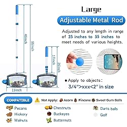 🏆【US Patented Design】Patent No. D982108, D1017351, 10789234 🌳【Research Intent】Say Goodbye to Bend Over/Sore Back. Scroll back and forth across any surfaces to collect various nuts, Just dumped directly after filling up. You can keep standing instead of kneeling and bending during the whole process. Use nut harvester. Quick collect& Easy to Operate Save Your Time & Strength. A quick roll of the nut gatherer lets a laborsome chore becomes a fun task! 🌳【Unique Patented Design】All Nuts collectors on the market require need to pull the wires apart manually and shake to dump out the objects, sometimes even clamp hands. Zozen DUMP WAY DESIGN -Opening design is upward + weighted lid. The lid stays closed during pickup to prevent nuts from falling out, and automatically opens when dumping—more efficient! This dump way more labor-saving, no need to separate the wire manually, no need shake, Never clamp your hands. 🌳【Which Features are better Others】①Telescopic rod with 3pc fixed button to fix height will be tighter, adjust high which perfectly matches people with different heights. ②Spherical basket connecting shaft widened - better scroll. ③Dump Outlet medial is designed slope - better Dump. ④Comfortable soft handle cover. ⑤A storage bag, you can use to store the collected nuts. ⑥Exquisite Gift box packaging can be given as a gift 🌳【Material Introduction】The ROD of the nut collector is made of high-strength aluminum alloy, durable and rust-resistant, not easy to deform and bend. The SPHERICAL BASKET is made of 304stainless steel wire, which has good elasticity and does not damage the nuts or fruit, evenly-spaced, heat-tempered wire cage that maintains shape during use. 🌳【Widely Used】This one capacity is gallons. This one nut gatherer can picks up objects 3/4’’ To 2’’ in sizes such as Pecan, Walnuts, Hickory nuts, Chestnuts, Buckeyes, Golf, Butternuts and more. Note: this one CANNOT pick up Acorns & Sweet gum balls & Pinecone.