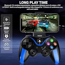 【COMPATIBLE WITH IOS & ANDROID 】 Mfi controller compatible with ios 13.4+ & Android 6.0 + System. With adjustable phone clip for 4-6in iPhone 15/15 Plus/15 Pro/15 Pro Max/14/14 Plus/14 Pro /14 Pro Max/13/13 mini/13 Pro/13 Pro Max/12/12 mini/12 Pro/12 Pro Max/11/11 Pro/11 Pro Max/X/XR/XS/XS Max; Galaxy S24 Ultra series S23 Ultra series/ S22 Ultra series/ S20 Ultra series/ S10 series/S9 series/S8 series, One Plus, TCL, Motorla and more android phones (Not for Apple TV/iPod//Fire TV/TV Box/PC) 【DIRECT PLAY】The phone controller no simulator needed. Using wireless Bluetooth protocol 5.0, Wireless range up to 32.8 feet. Connect Bluetooth for direct playback 【LOWEST LATENCY & PRECISE CONTROL】The bluetooth game controller with 360° high-precision joystick, precise positioning and smooth movement, you can quickly target enemies in the game and Improve your gaming experience. 【SUPPORT MOST MFI AND CLOUD GAMING】You can download your favorite games in App Store/Arcade/Google Play. Supports most Action/Racing/Fighting/Shooting/Athletics games. Work with Apex Legends Mobile, Genshin Impact, Call of Duty Mobile (COD), Combat Modern 5 and Asphalt 9 Legends and more mfi games. (Not for PUBG & Fotnite) 【LONG PLAY TIME】The android controller built-in rechargeable 400mAh battery, Up to 18 hours of playtime on a full charge, designed for long gaming sessions. 【WHAT YOU GET?】1x Mobile Game controller, 1x charging cable, 1x user manual, and friendly customer service. If you have any questions, please feel free to contact us.