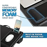 LAPGEAR Extra Large Adjustable Lap Desk – Fits Laptops up to 17.3”, Adjustable Cushion, Memory Foam Wrist Rest, Mouse Pad, Device Ledge, & Phone Slot – Black Carbon - Style No. 88108