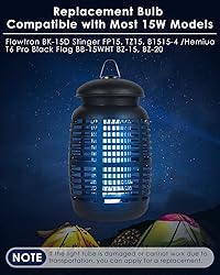 【Compatible Models】-This FUL15W BL with 4 Pin Base bulb replacement is compatible with Flowtron BK-15D Stinger FP15, for TZ15, for B1515-4 /Hemiua T6 Pro, for Black Flag BB-15WHT BZ-15, BZ-20 and most 15W Bulb Replacement. 【NOTE】-The light tube is fragile. If the light tube is damaged or cannot work due to transportation, you can apply for a replacement. If you have other problems, please do not hesitate to contact us! 【Long-Lasting】-The working effect of this lamp can reach about 8000 hours (about 10 months), so the light is stable and the effect is very good. You can use it many times in your home, garden, restaurant, etc. 【Easy To Install】-Please unplug it first, then let it sit for 2 hours to let all the electricity drain. Then remove the old bulb and replace it with a new bulb. Please make sure it fits correctly in the socket you removed! 【Function】-Replace 15W bulb that don't work, attract them effectively, avoid them disturbing you. It quiet and noiseless which can create a comfortable environment for you.