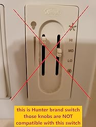 compatible replacements one set of white split knobs only for "Lutron Skylark" dual split dimmers for fan, ceiling - please see peg pictures for compatibility (if your slider pegs have a different shape, they will not work for your slider) direct replacements of the original ones, the knobs are about 13mm long, 9.3mm wide and 10.7mm tall, please make sure this is the size you are looking for. If the knobs you are looking for are diffrent size, those one will not fit. white color compatible ONLY with LUTRON Skylark DUAL SPLIT DIMMER they are NOT compatible with the Hunter switches or other brands.