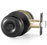 Material:Stainless Steel; Matte Black Finish; Flat Round Ball Privacy Knob 1 Pack per package(for 1 doors) : Privacy door knobs with modern nickel finish for bathroom or bedroom door. Confirm with ANSI Grade 3, Exceeds 200,000 cycles. Steel Adjustable Latch : It has adjustable universal latch - 2-3/8" or 2-3/4", Fits doors 1-1/4 inch to 1-3/4 inch EASY INSTALLATION: Install your door knob in a flash, mounting screws and instruction are included. DIMENSIONS: Adjustable latch with backset is 2-3/8" or 2-3/4"(60mm or 70mm) to fit all standard doors in the thickness of 1-3/8" to 1-3/4" (35mm to 45mm).