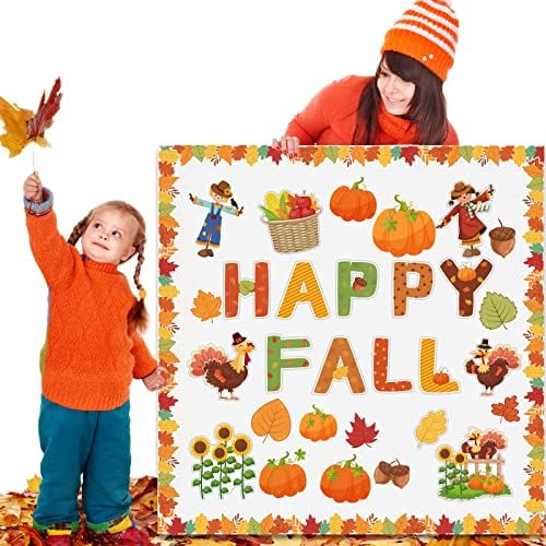 - 【Happy Fall Bulletin Board】 You will receive 56 pcs fall theme cut outs with 9 designs of letter and 21 designs of pattern, each design has 2 pcs,and 12 pieces fall bulletin board borders with 60pcs glue points for you to stick;they are funny and colorful.