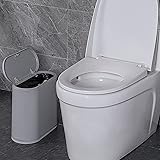 Sooyee 10 Liter Rectangular Plastic Trash Can Wastebasket with Press Type Lid,2.4 Gallon Garbage Container Bin for Bathroom,Powder Room,Bedroom,Kitchen,Craft Room,Office,(Gray)