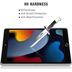 ★ COMPATIBILITY: for iPad 10.2 inch 2021 9th Generation (model number A2602 A2603 A2604 A2605), 2020 8th Generation (model number A2270 A2428 A2429 A2430) AND 2019 7th Generation (model number A2197 A2198 A2200). ★ SCRATCH RESISTANT: 9H hardness anti scratch tempered glass effectively helps to protect your screen from daily scratching,impact and normal signs of wear. ★ ONE-PUSH EASY INSTALLATION: Bubble Free adhesive helps you install this screen protector on your tablet quickly and effectively. ★ HIGH SENSITIVITY: Made with high quality 0.33mm thick premium tempered glass with rounded edges, maintain your screen's original touchscreen sensitivity without compromising the high-definition viewing experience. ★ Easy Installation - One-push super easy installation,bubble free,no residue when removing.